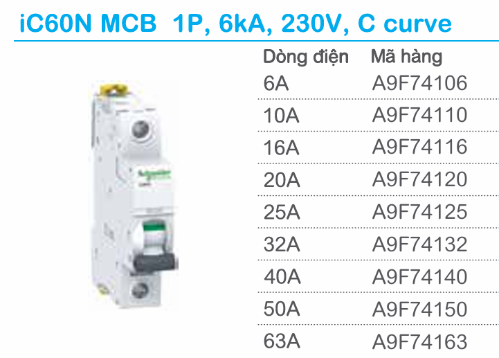 _Dòng định mức: 6A/10A/16A/20A/25A/32A/40A/50A/63A