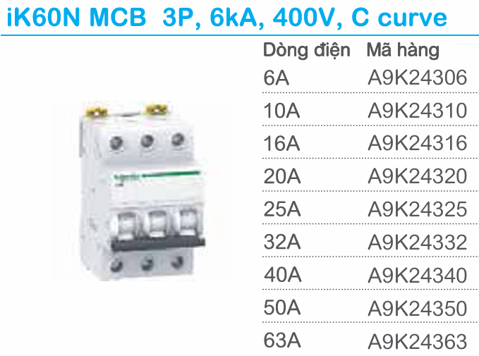 _Dòng định mức : 6A/10A/16A/20A/25A/32A/40A/50A/63A