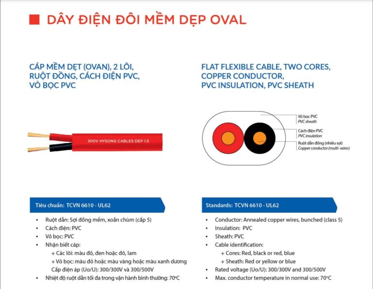 – Bề dày cách điện ( mm ) : 0.8
