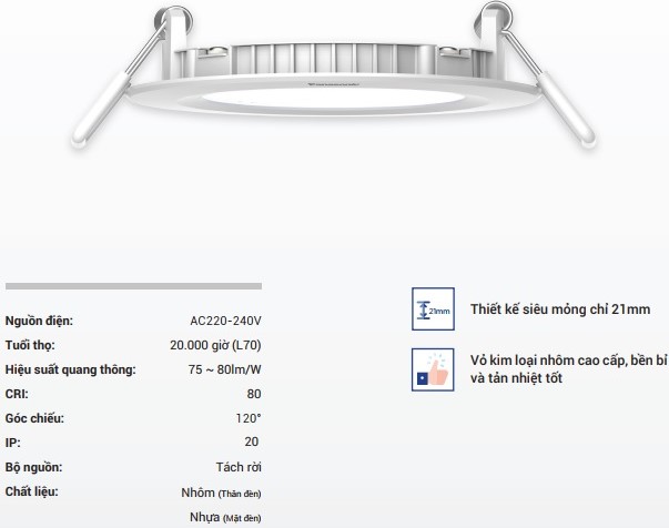 -Thiết kế siêu mỏng chỉ 22mm mang lại sự sang trọng cho mọi công trình điện