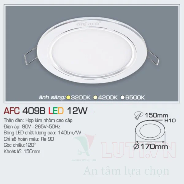 ĐÈN LED ÂM TRẦN TRÒN ANFACO AFC-409-12W